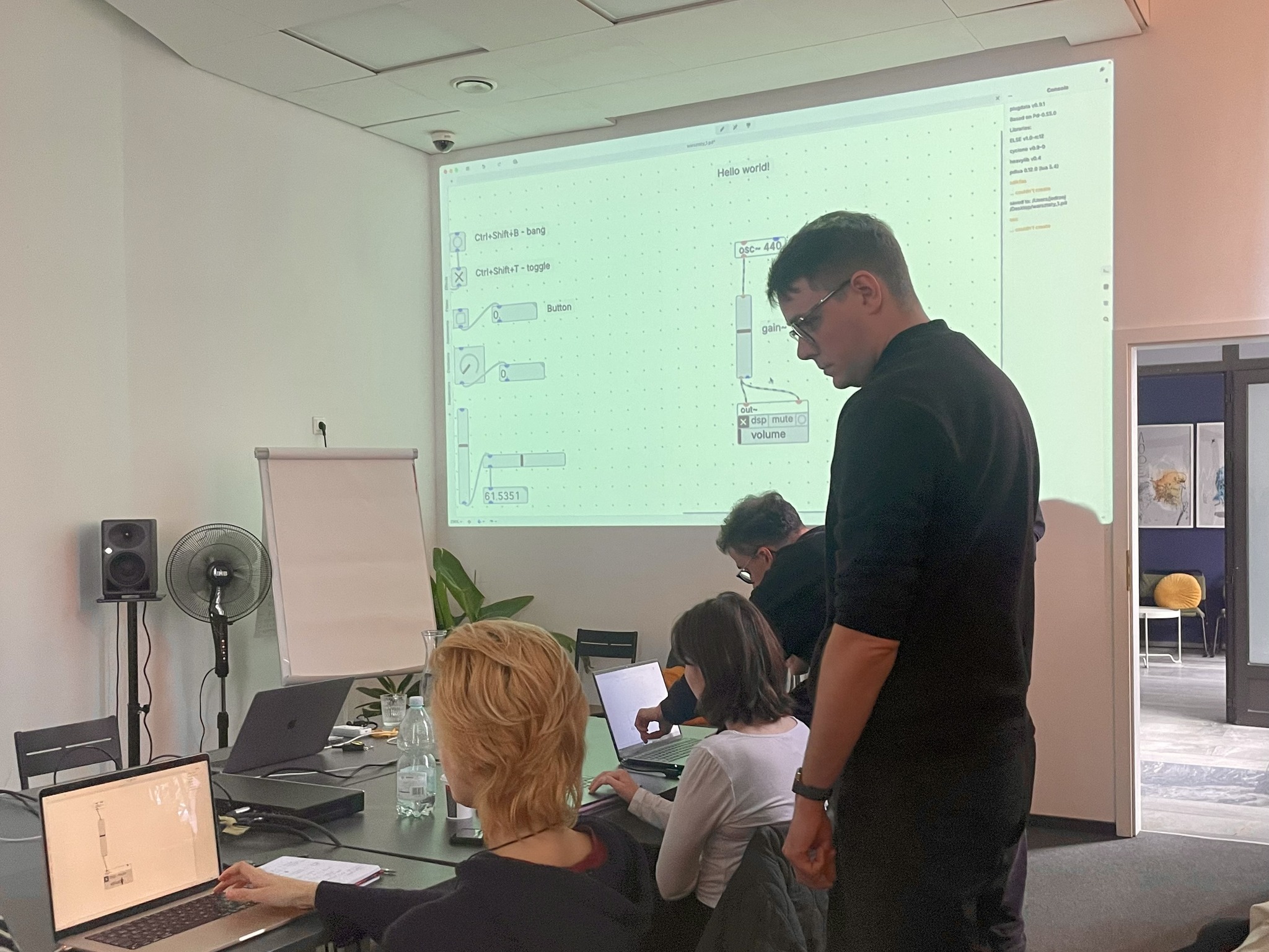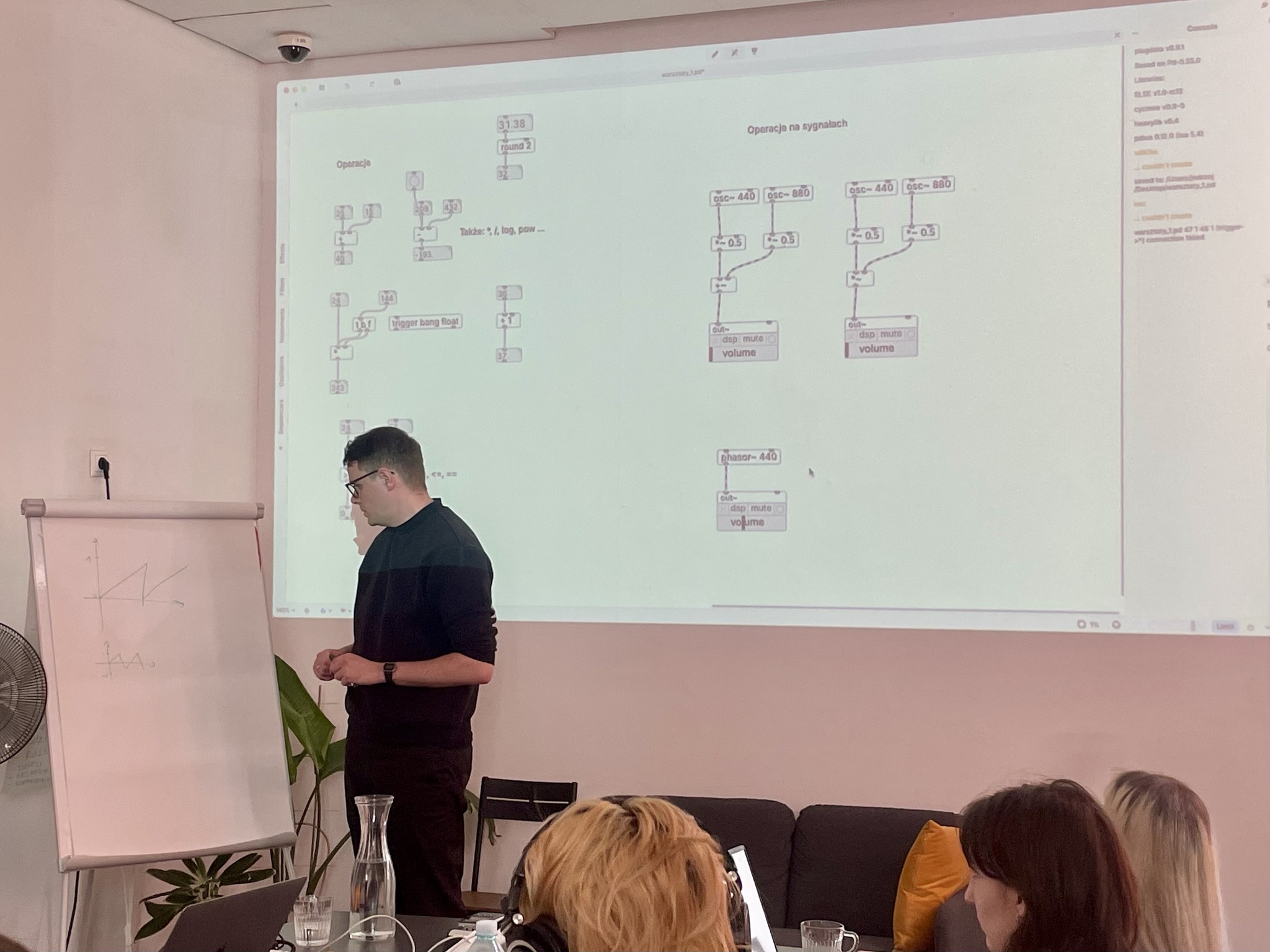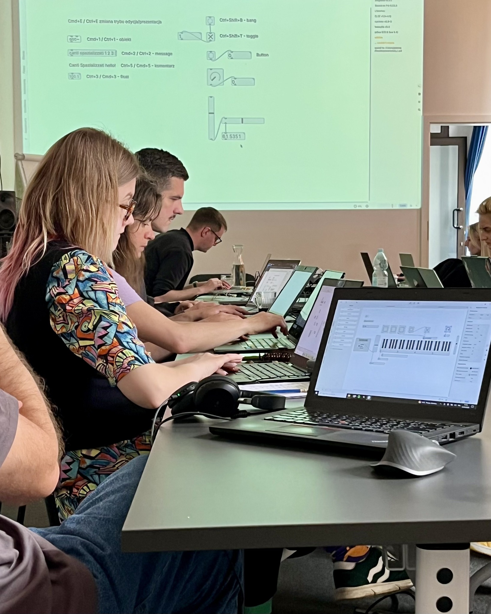 Cykl warsztatów Sound Lab w kolejnej odsłonie. Tym razem dzięki Jędrzejowi Borowskiemu mieliśmy_ałyśmy szansę zgłębić Pure Data: otwarte, wieloplatformowe i darmowe środowisko programowania służące do do przetwarzania dźwięku w czasie rzeczywistym. Dzięki temu narzędziu nauczyliśmy_łyśmy się też tworzyć muzykę przestrzenną w konwencji live-codingu. Ponadto, poznamy podstawy ambisonii, stworzyliśmy_łyśmy własny program do rozmieszczania dźwięku w przestrzeni, wykorzystamy oscylatory, procesy losowe i czujniki ruchu, a wreszcie dowiedzieliśmy_łyśmy się, jak połączyć Pure Data z programami typu DAW. Warsztaty otwarte były dla wszystkich – nie było wymagane wcześniejsze doświadczenie w produkcji muzycznej ani w programowaniu.