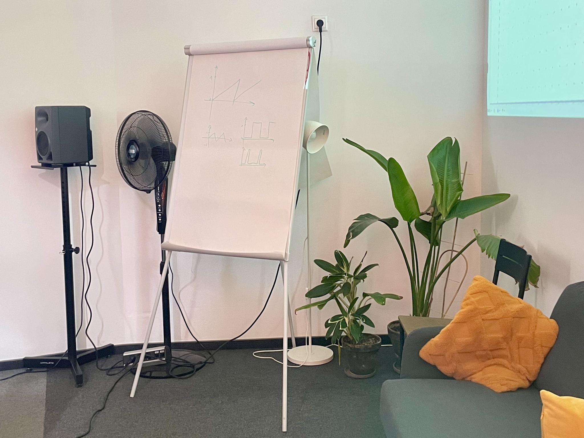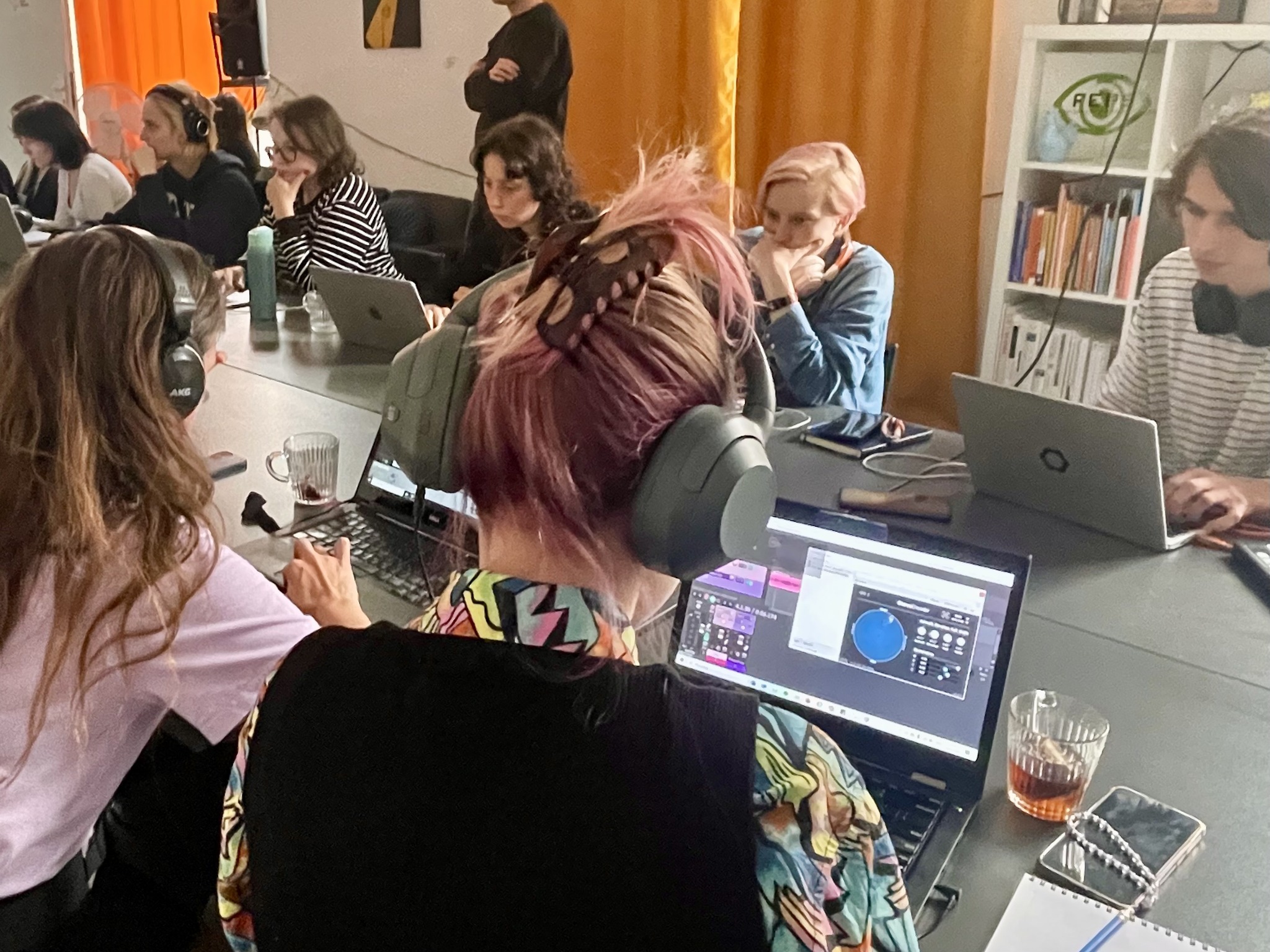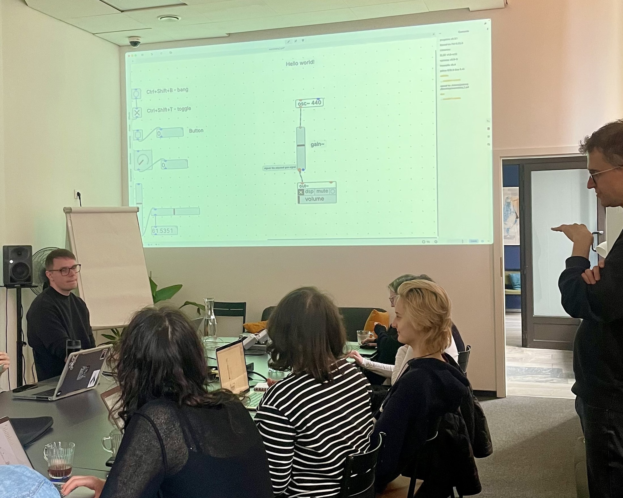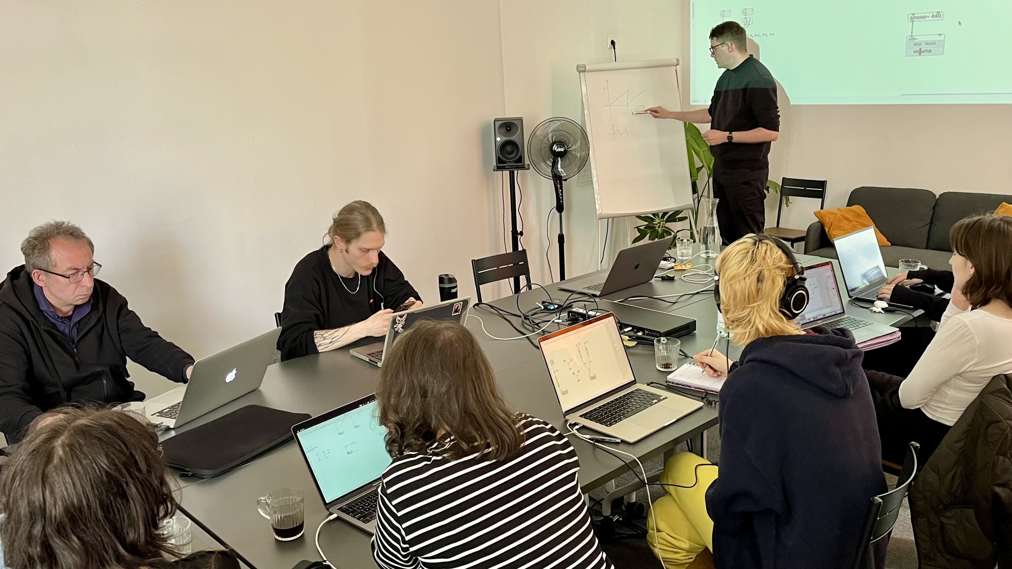 Cykl warsztatów Sound Lab w kolejnej odsłonie. Tym razem dzięki Jędrzejowi Borowskiemu mieliśmy_ałyśmy szansę zgłębić Pure Data: otwarte, wieloplatformowe i darmowe środowisko programowania służące do do przetwarzania dźwięku w czasie rzeczywistym. Dzięki temu narzędziu nauczyliśmy_łyśmy się też tworzyć muzykę przestrzenną w konwencji live-codingu. Ponadto, poznamy podstawy ambisonii, stworzyliśmy_łyśmy własny program do rozmieszczania dźwięku w przestrzeni, wykorzystamy oscylatory, procesy losowe i czujniki ruchu, a wreszcie dowiedzieliśmy_łyśmy się, jak połączyć Pure Data z programami typu DAW. Warsztaty otwarte były dla wszystkich – nie było wymagane wcześniejsze doświadczenie w produkcji muzycznej ani w programowaniu.