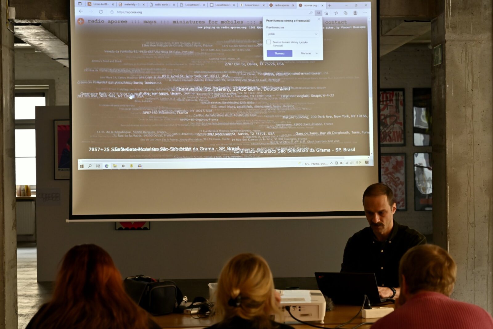 ⁕ The theme of both meetings will be live sound transmission, especially in field conditions, outside of studios. We will focus on technical issues as well as collectives formed around this issue. We will analyze the components and methods needed to create a live stream. We will show that these devices are accessible and easy to use. We will look at examples of existing streams—permanent and temporary installations, as well as festivals and events related to this topic.